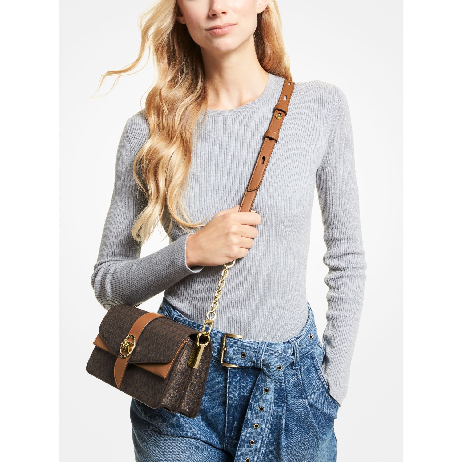 Consider our Greenwich shoulder bag the quickest way to make a chic statement. The combination of Signature-print canvas and polished hardware feel at once edgy and modern, while interchangeable shoulder straps complete the eye-catching style with added versatility. We think it’s the ultimate finishing touch to create a polished look.