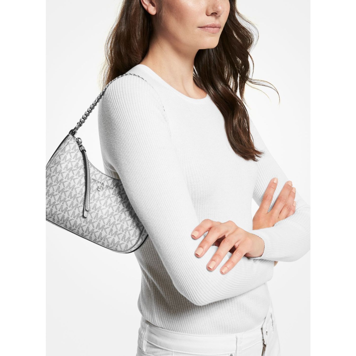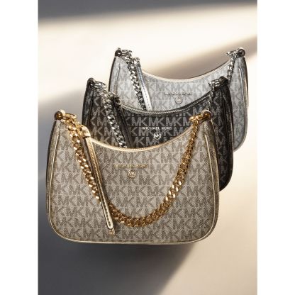 Equal parts timeless and on trend, our metallic Jet Set Charm pochette is a modern take on the wardrobe icon. Designed in a compact, structured silhouette for feminine flair, it’s finished with a chain-link strap that lends tough-luxe appeal. Endlessly versatile, style it with dresses and jeans alike.