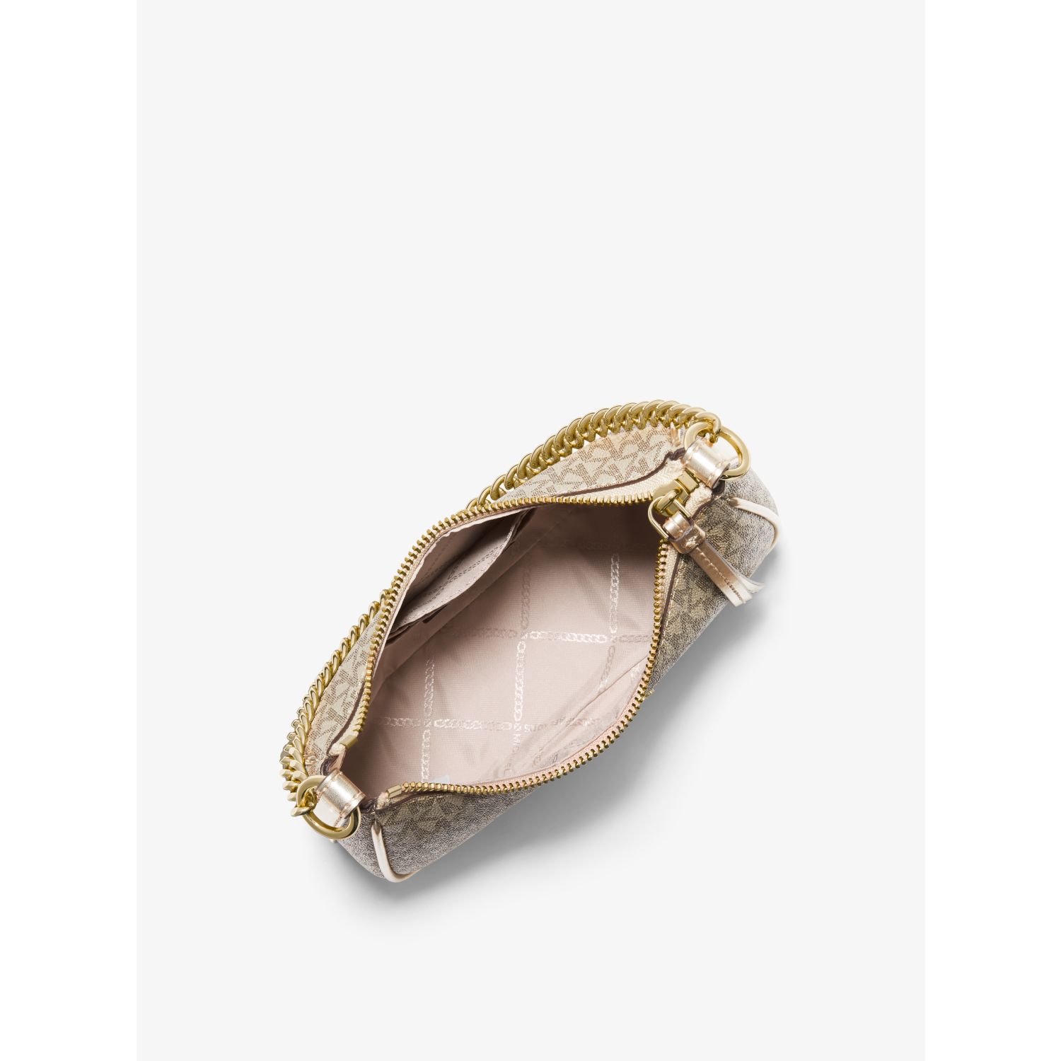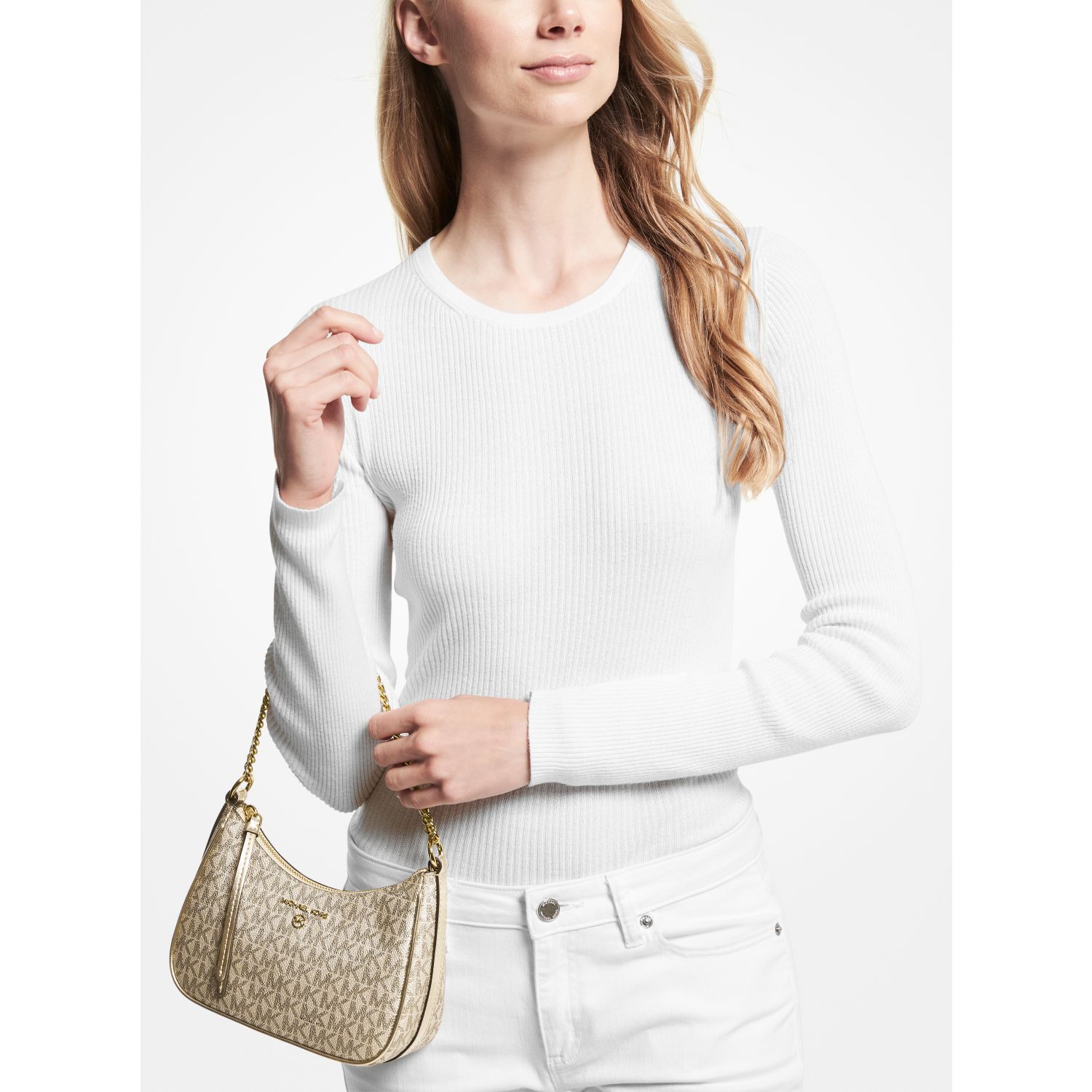 Equal parts timeless and on trend, our metallic Jet Set Charm pochette is a modern take on the wardrobe icon. Designed in a compact, structured silhouette for feminine flair, it’s finished with a gilded chain-link strap that lends luxe appeal. Endlessly versatile, style it with dresses and jeans alike.