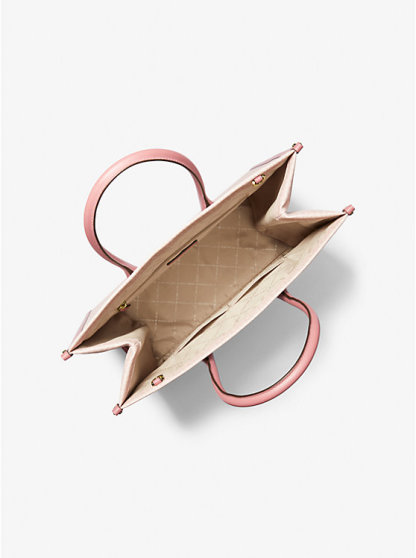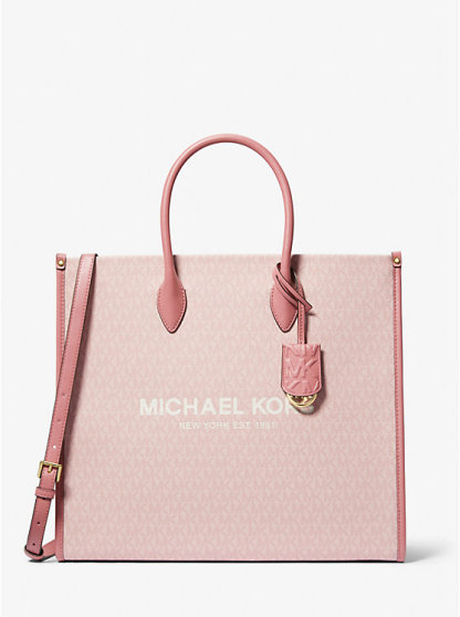 Crafted from coated canvas in a structured silhouette, our Mirella tote features the brand's iconic lettering and touches of high-shine hardware. With smooth accents and a pocketed interior, this bag will be your new daytime and travel go-to. Wear it with denim and a classic white shirt.