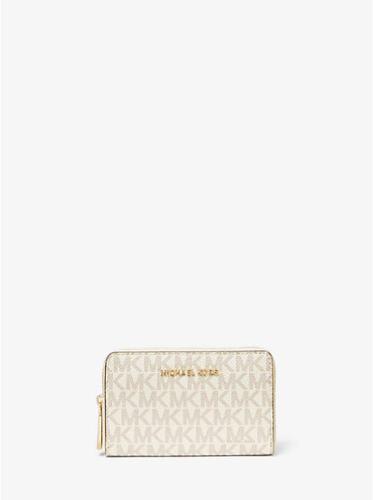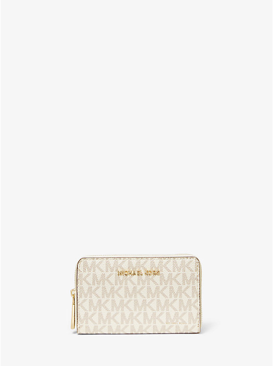 Designed in a compact zip-around silhouette, this logo print and leather wallet opens to reveal multiple card slots and space for your cash. We love how an exterior slip pocket offers quick access to your ID. Slip it into the coordinating tote bag, or a clutch come evening.