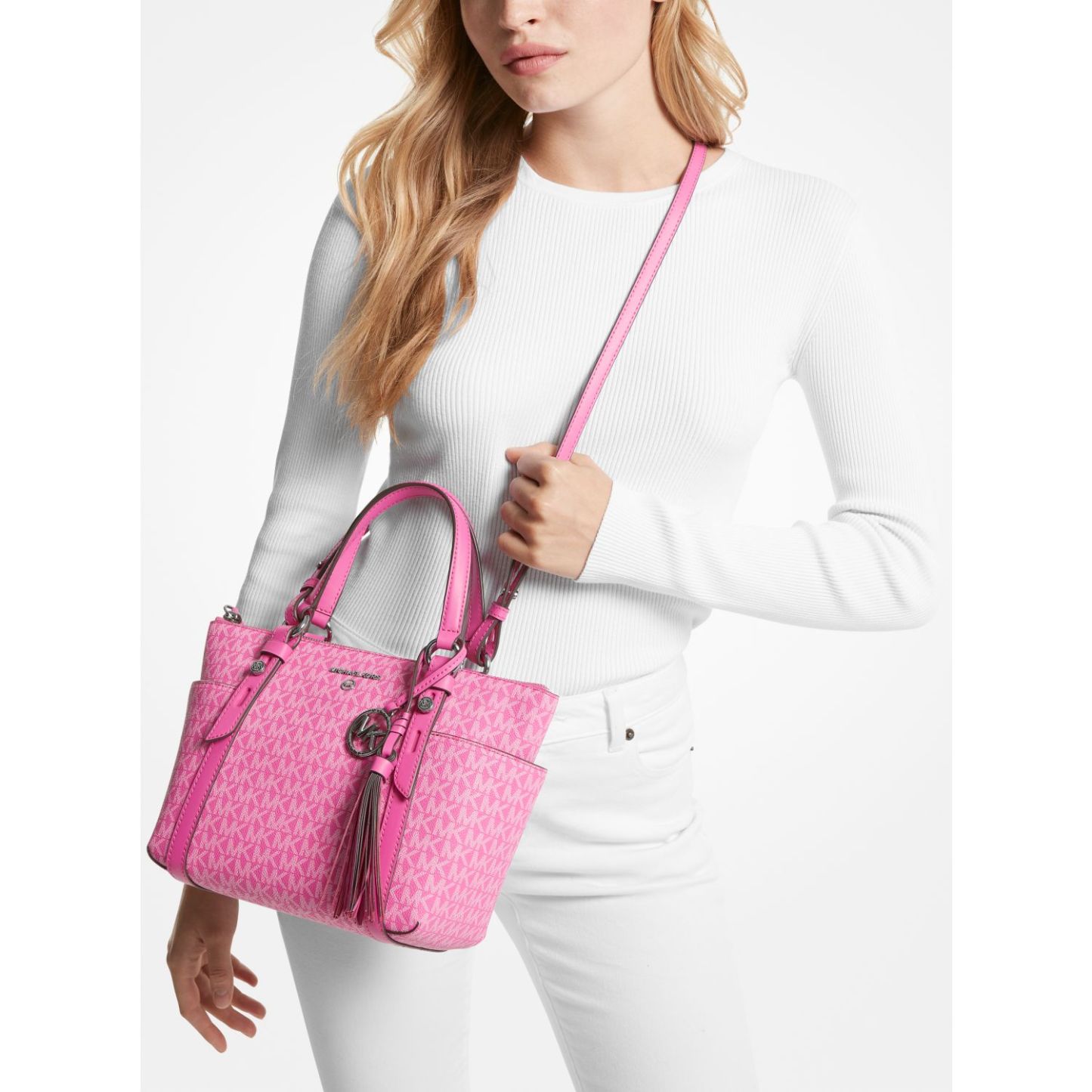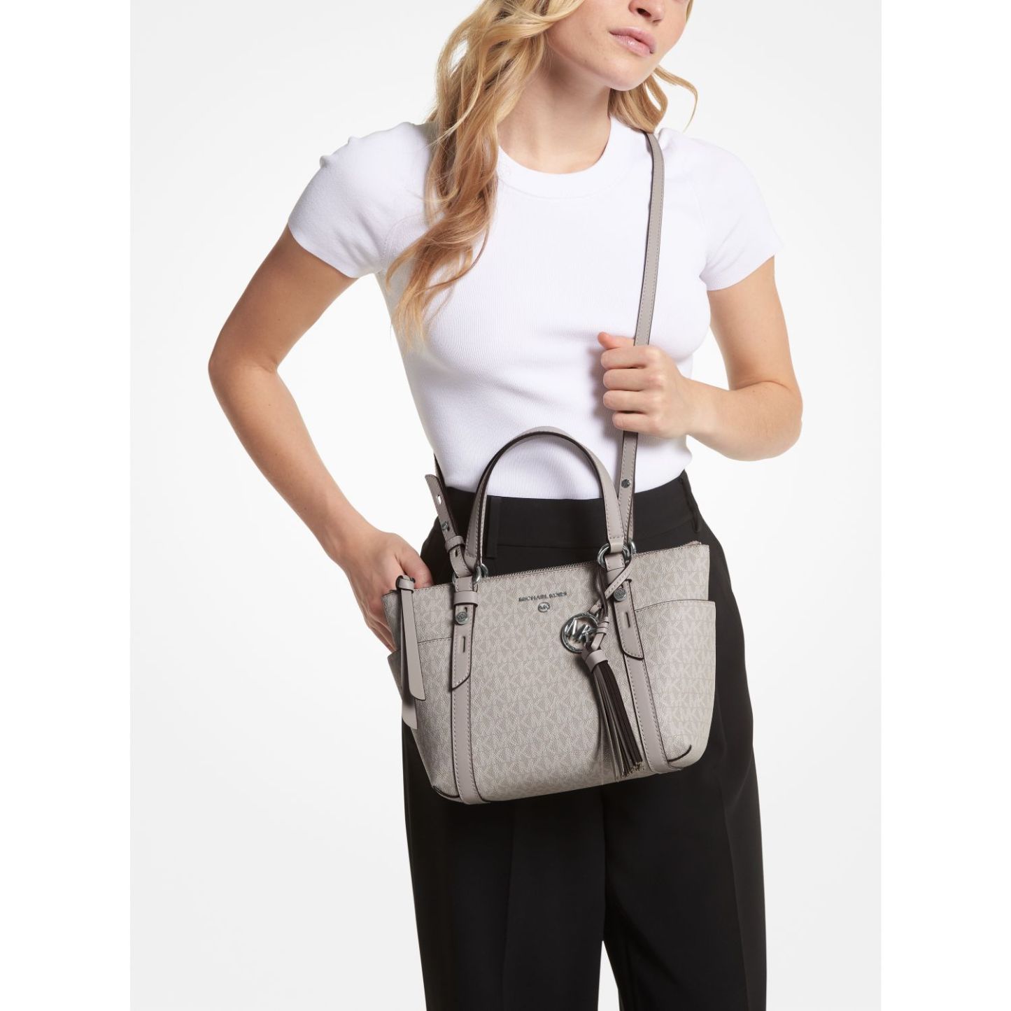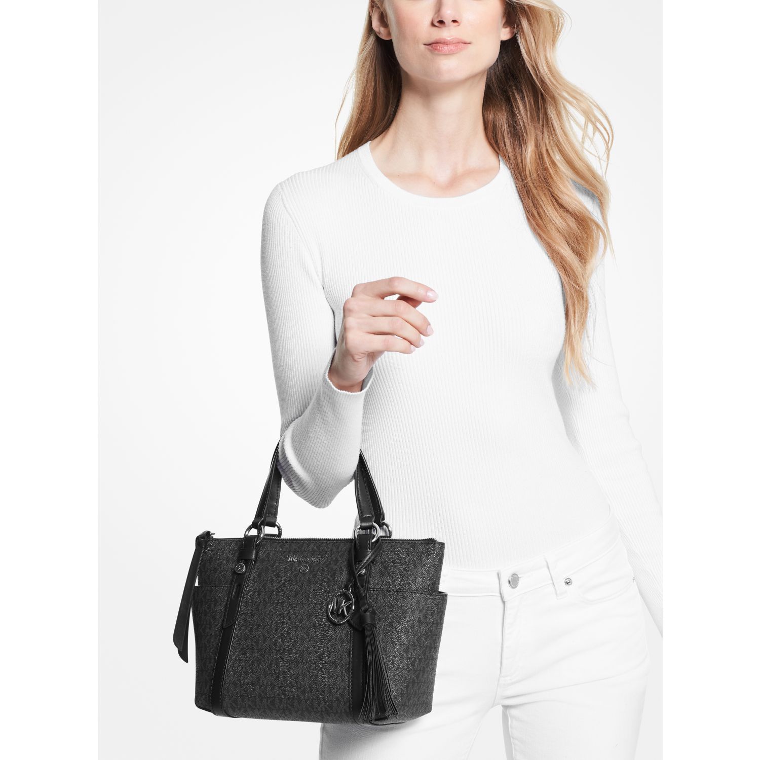 DESIGNFeaturing two practical exterior side pockets and a removable crossbody strap, the Sullivan top-zip tote bag is an ideal everyday carryall. Our Signature-print canvas and leather trim combine to luxe effect, while a removable charm provides a novelty finishing touch.