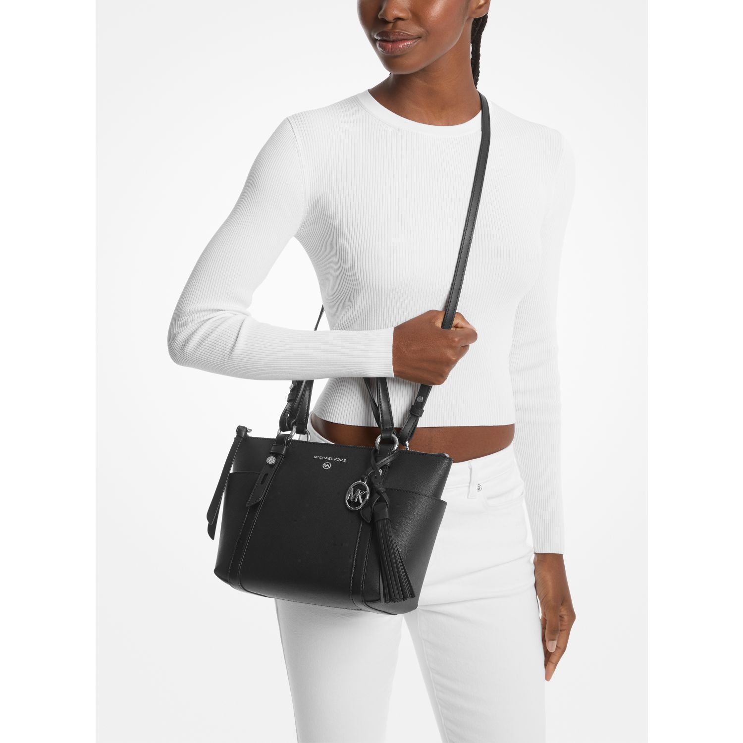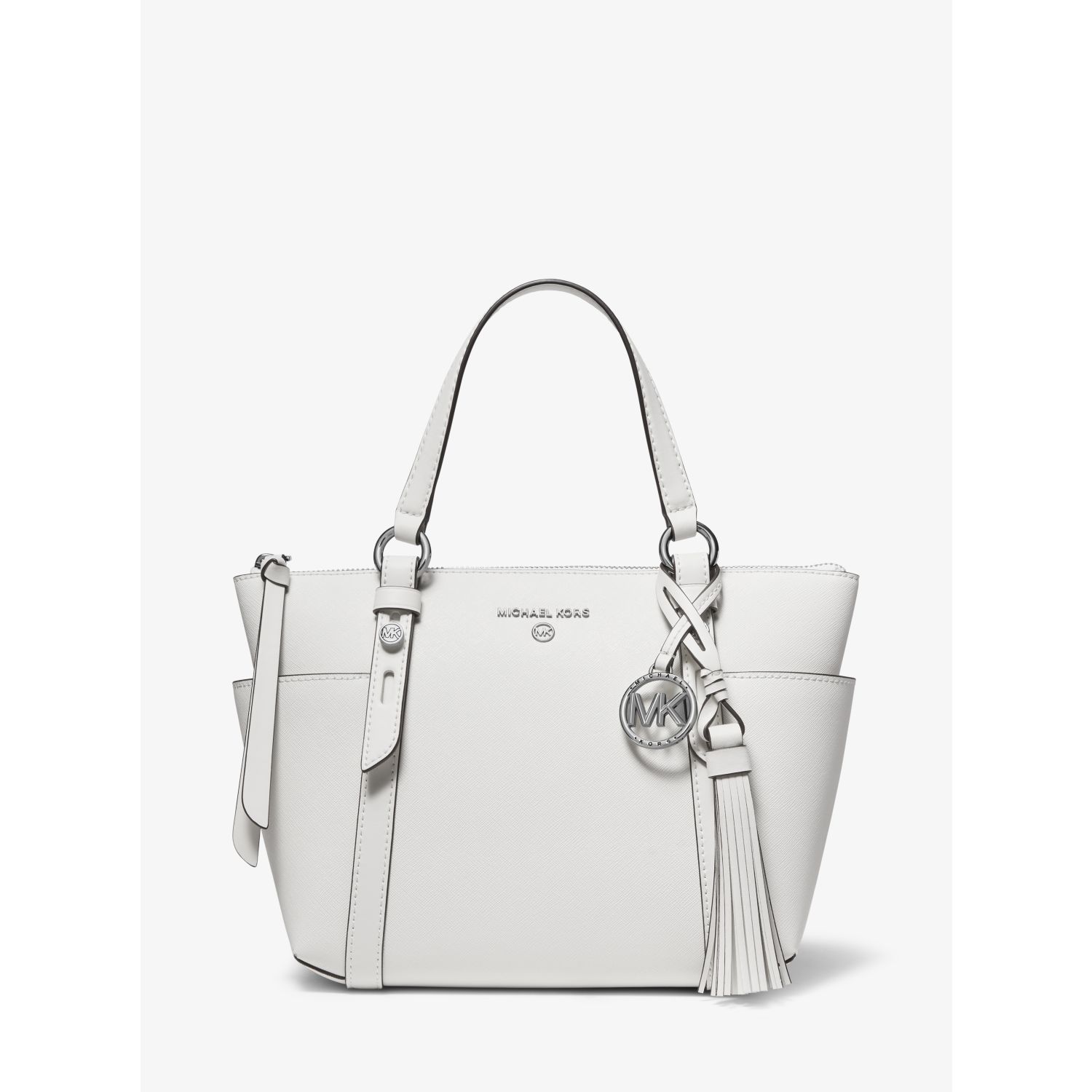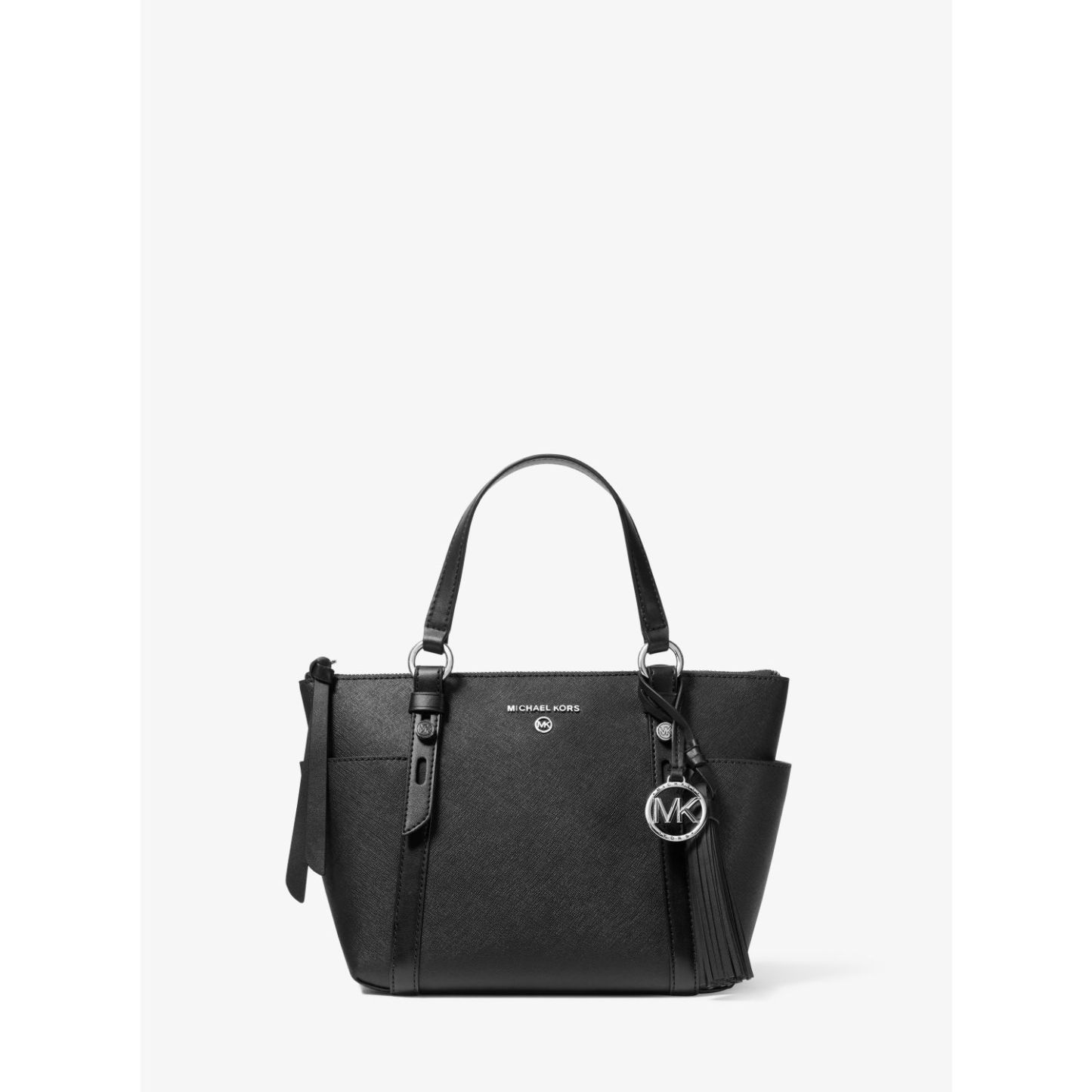 DESIGNFeaturing two exterior side pockets—for easy access to the essentials—and a removable crossbody strap, the Sullivan top-zip tote bag is an ideal carryall. Silver-tone hardware and Saffiano leather combine to luxe effect, while a removable logo charm provides a signature finishing touch.