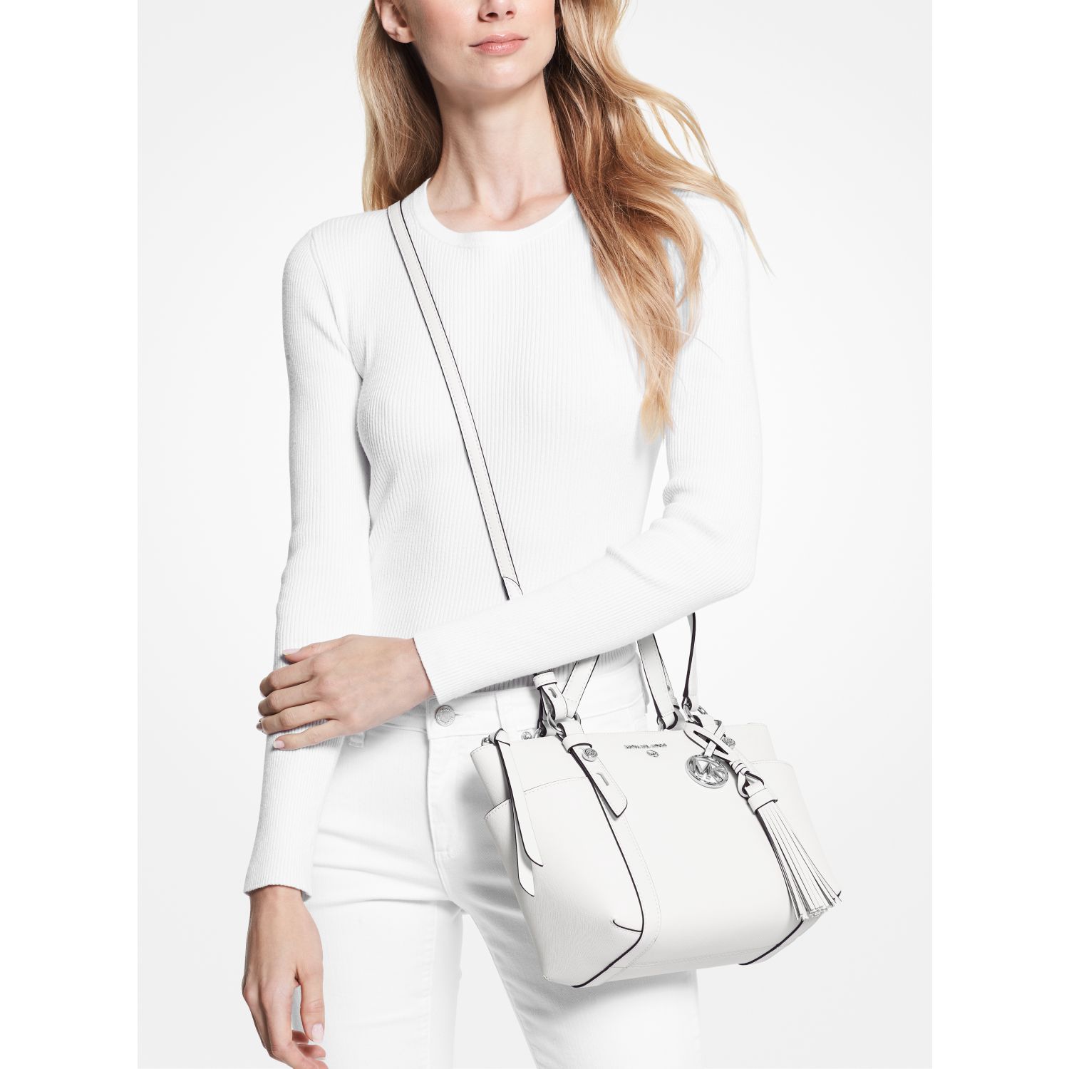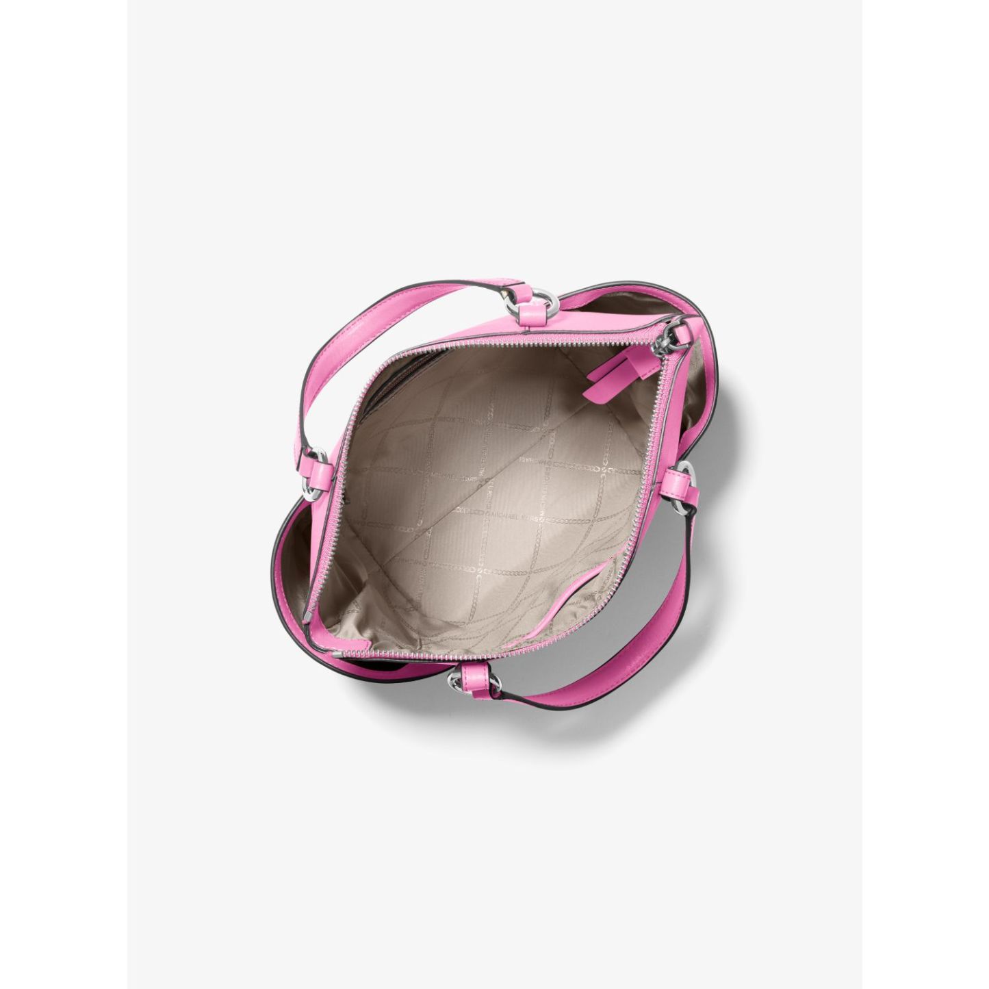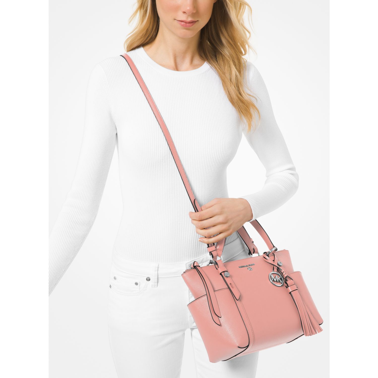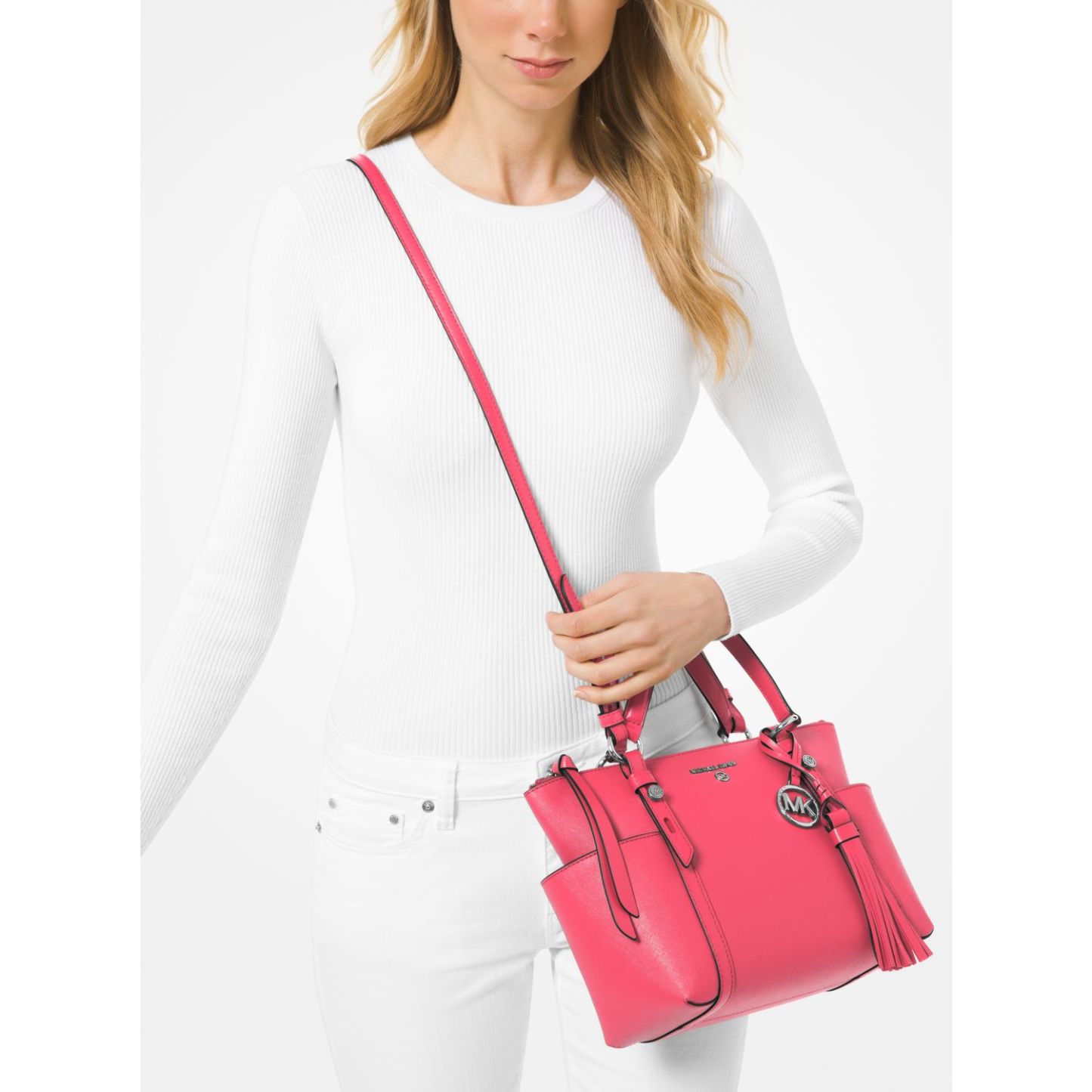 DESIGNFeaturing two exterior side pockets—for easy access to the essentials—and a removable crossbody strap, the Sullivan top-zip tote bag is an ideal carryall. Silver-tone hardware and Saffiano leather combine to luxe effect, while a removable logo charm provides a signature finishing touch.